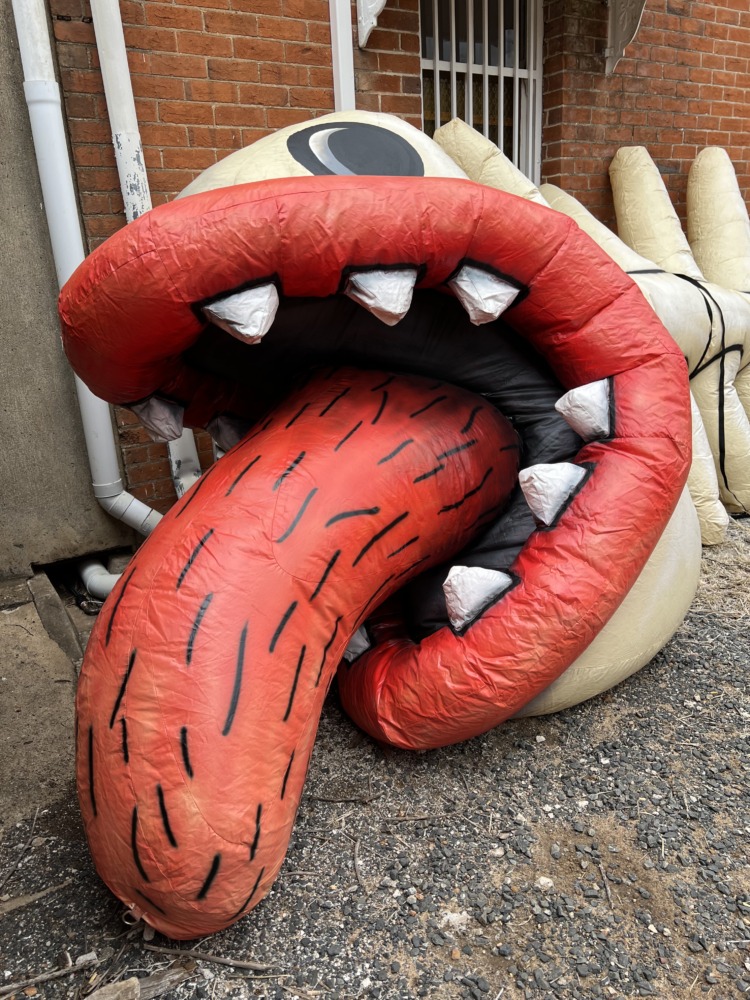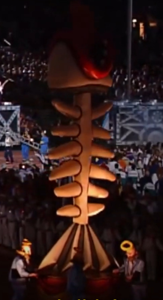 In July 2023 an auction of giant inflatable things happened online. In amongst the big gorillas, hot air ballons emblazoned with the words SALE, and the car lot wavy men, was a lot described as “Skeleton Fish”. Its style looked very familiar to me but there was no information about what it was and where it came from. There was only one other bidder, but they weren’t very serious, and I obtained this large piece of art for a very small amount.